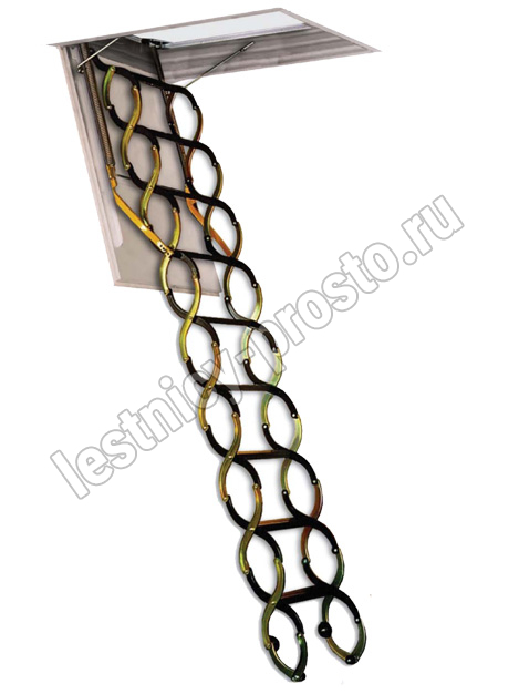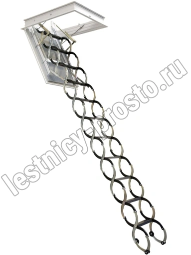 Крышка лестницы представляет собой многослойную конструкцию - деревянная рама, внутри которой находится пенопласт. Внутренняя часть крышки покрыта оцинкованной жестью, наружная часть белой эмалью и защитной пленкой. Толщина крышки 60 мм. Все соединяющие части изготовлены из твердого материала и имеют оцинкованное покрытие. Короб металлический высотой 140 мм., по периметру проходит уплотнитель. Ступени лестницы изготовлены из анодированной стали и покрыты порошковой краской, поверхность имеет антискользящие насечки и выдерживают нагрузку 150 кг.