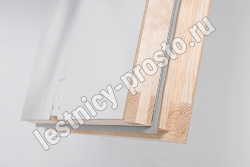 Лестница складная трехсекционная. Рабочая поверхность полностью выполнена из металла и покрашена порошковой краской. Термоизоляционная крышка типа "сэндвич", толщиной 86 мм, утеплена пенопластом, облицована с двух сторон ДCП белого цвета.