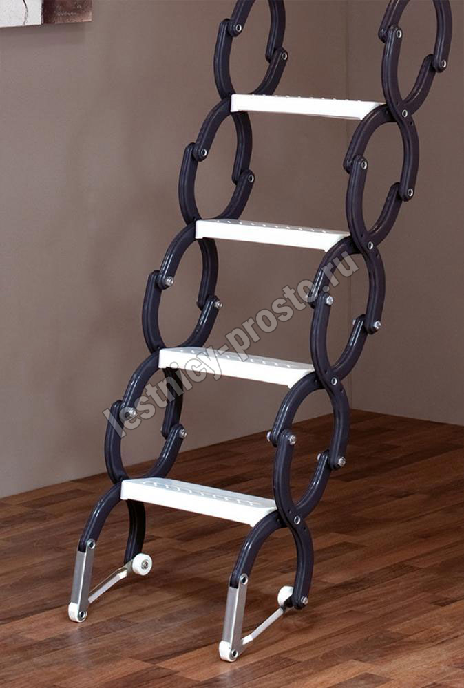 Ножничная лестница ELEGANCE износоустойчива, оснащена надежными металлическими защелками.