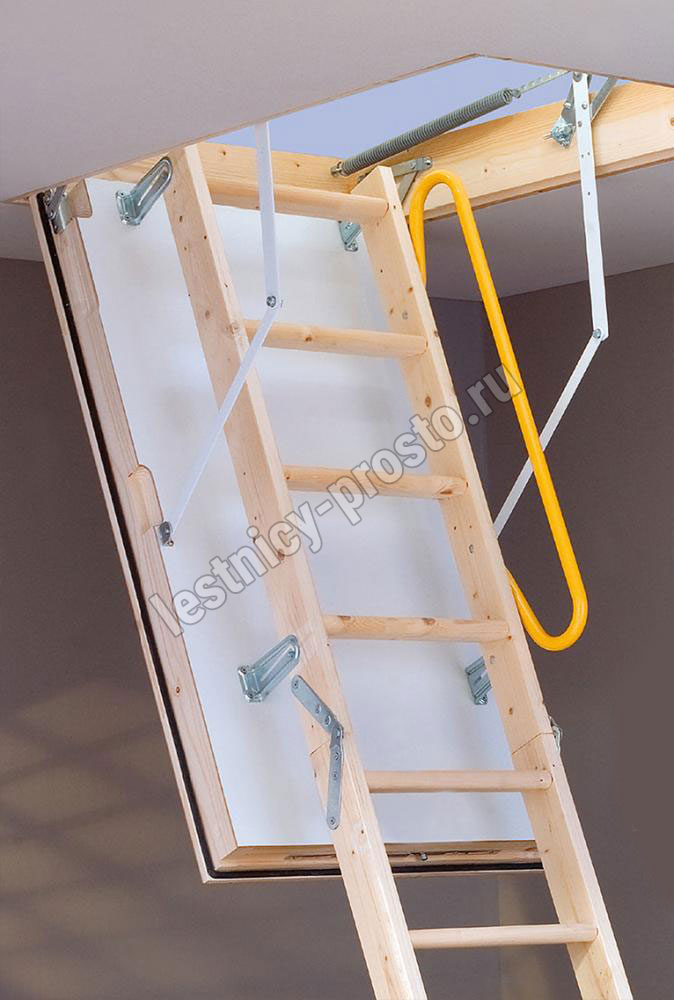 Складная деревянная лестница из 3-х секций с утепленным изолированным люком идеально подходит для крайне холодных чердачных помещений.