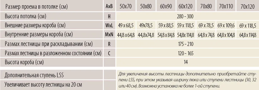 Для увеличения высоты лестницы дополнительно приобретайте ступени LSS, при этом указывая ширину люка или ступени лестницы (30, 32 или 40 см). Возможна установка не более одной ступени. Монтажный комплект LXK поставляется в комплекте с лестницей.