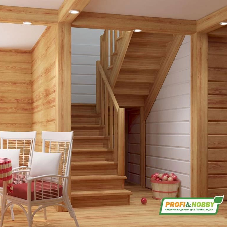 Деревянная межэтажная лестница ЛЕС-02, Сосна