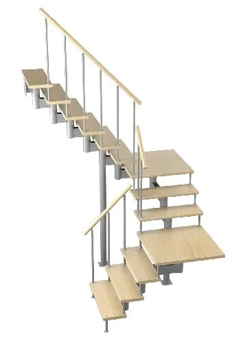 Универсальная лестница, имеющая в основе своей конструкции наклонную опорную балку. Легко впишется в любой интерьер, даже на неровном полу. Место под площадкой можно закрыть и использовать для хранения различных предметов. Монтаж осуществляется силами двух человек на объекте по указаниям, приведенным в паспорте на лестницу.