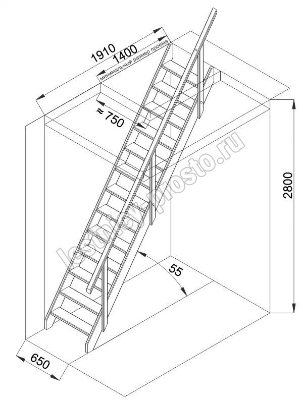 Высота лестницы 2800 мм