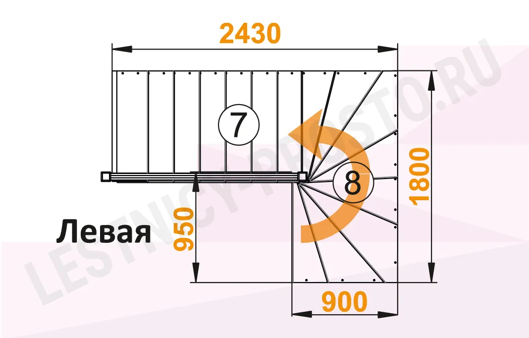 Схема лестницы К-003М/5 с поворотом направо