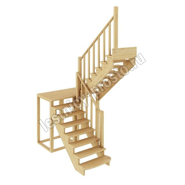 Ступени и поручень лестницы выполнены из бука, остальные элементы из сосны.