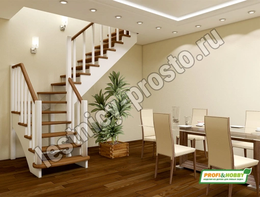 Базовый комплект включает в себя деревянные элементы лестницы и ограждения ;без какого-либо покрытия.