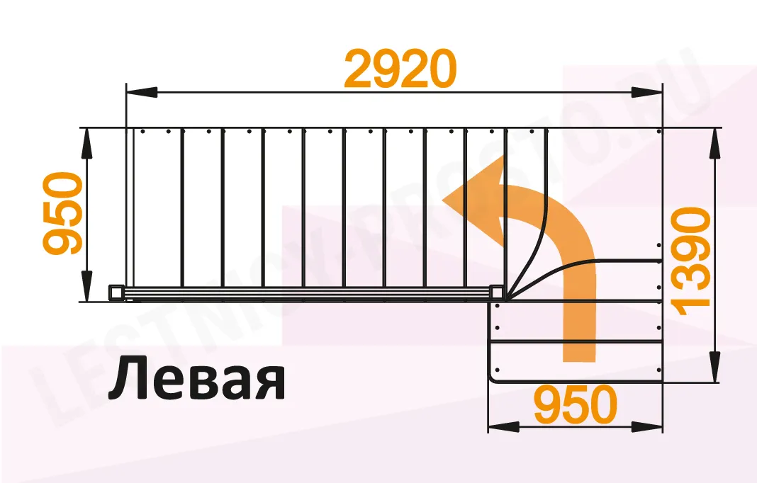 Схема лестницы К-031М/1 с поворотом налево