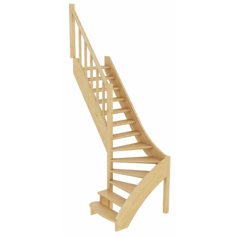 Ступени и поручень лестницы изготовлены из дуба, остальные элементы из сосны. Возможно изготовление данной модели полностью из дуба. Базовый комплект включает в себя деревянные элементы лестницы и ограждения без какого-либо покрытия.