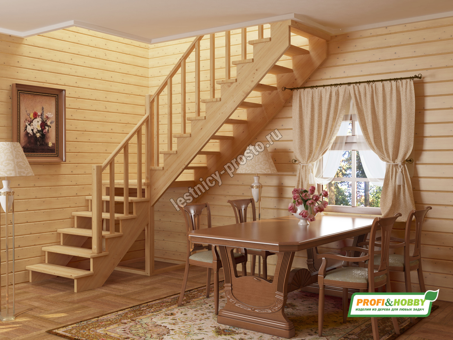 Базовый комплект включает в себя деревянные элементы лестницы и ограждения без какого-либо покрытия. Вы можете заказать у нас покраску лестницы в цвета, отвечающие особенностям вашего помещения.