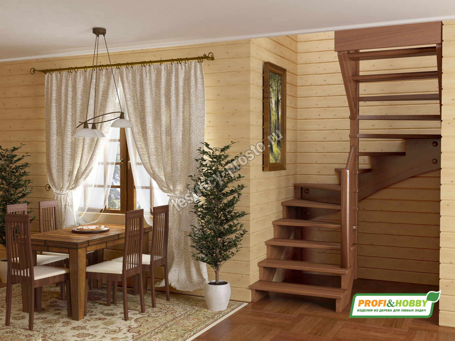 Базовый комплект включает в себя деревянные элементы лестницы с подступёнками и ограждения без какого-либо покрытия.