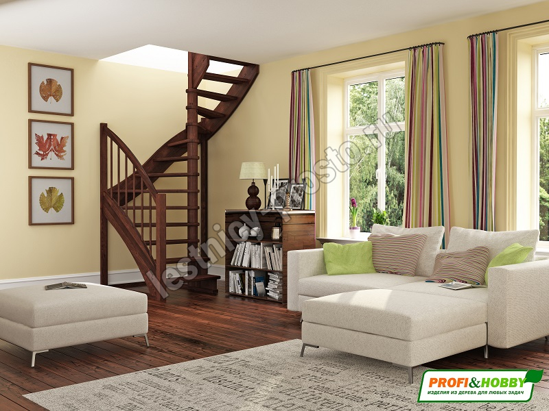 Базовый комплект включает в себя деревянные элементы лестницы и ограждения без какого-либо покрытия. Вы можете заказать у нас покраску лестницы в цвета, отвечающие особенностям вашего помещения.