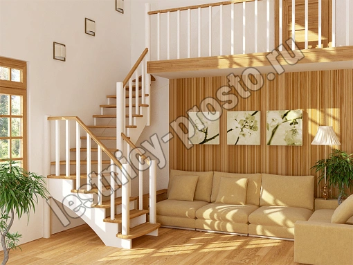 Базовый комплект включает в себя деревянные элементы лестницы и ограждения без какого-либо покрытия.