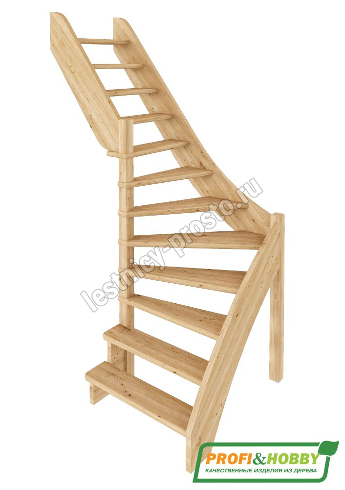 Базовый комплект включает в себя деревянные элементы лестницы без какого-либо покрытия.