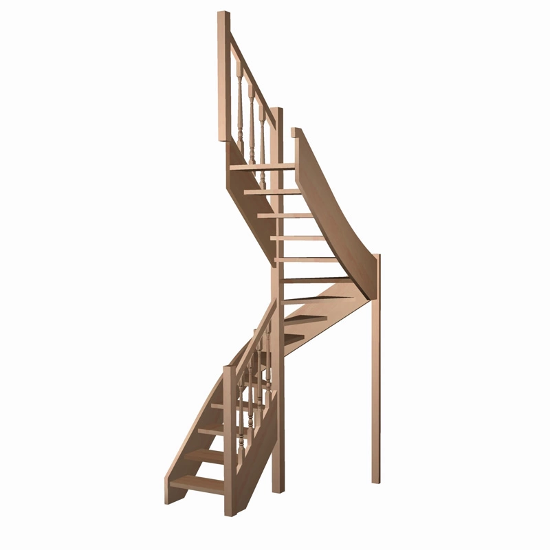 Материал: ясень (ступени и поручень), сосна (тетивы, столбы, балясины)