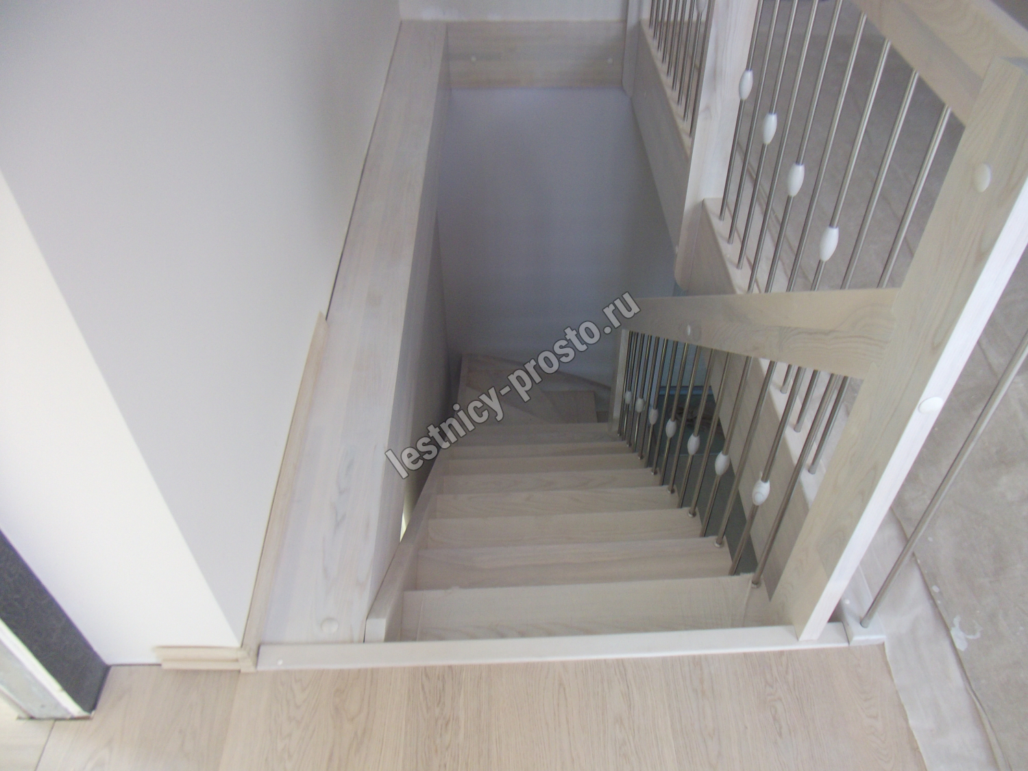 Надёжная современная лестница выполнена по немецкой технологии. Стоимость указана для лестницы с ограждением (с одной стороны); Поставляется в разобранном виде, в комплекте необходимый крепёж; Лестницу можно собрать самостоятельно; Так же, вы можете заказать услугу монтажа нашими специалистами; 4 вида породы дерева для изготовления лестницы: сосна, бук, ясень, дуб; возможна комбинированная лестница: из сосны (ступени бук, ясень, дуб); Деревянные элементы без какого-либо покрытия, отшлифованы, готовы к покраске. За дополнительную плату, вы можете изменить любые параметры, а именно: увеличить глубину ступени; увеличить ширину марша до 900 мм. и выше; заказать подступенки к лестнице; заказать отделку перекрытия (между 1-м и 2-м этажами); изготовить дополнительный промежуточный марш; заказать ограждение 2-го этажа; покраска в любой цвет или несколько цветов или покрытие защитными средствами; дополнение балясины из нержавеющей стали деревянными элементами; покраска балясин из нержавеющей стали порошковой краской в цвет RAL.