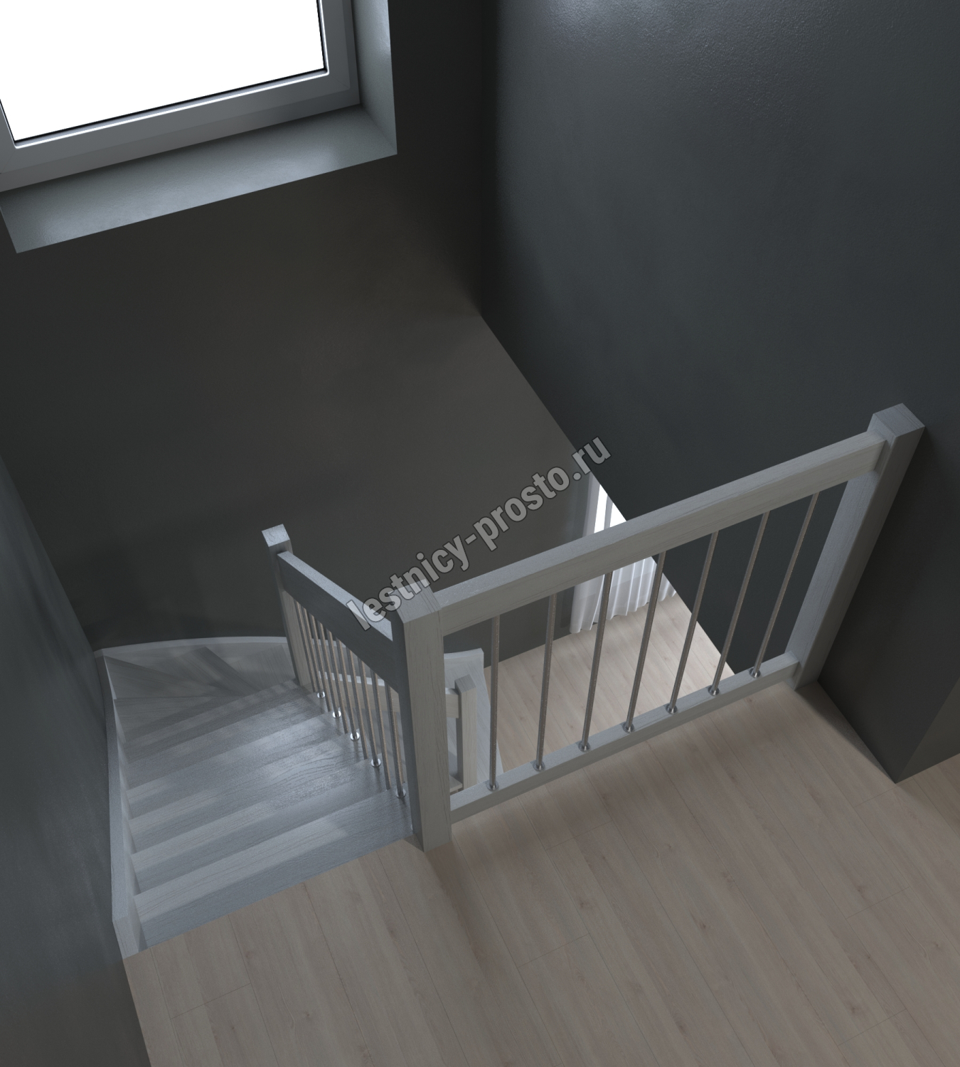 Лестница Prosto Console г-образная забежная дуб, h247.5 см (10 ступеней)