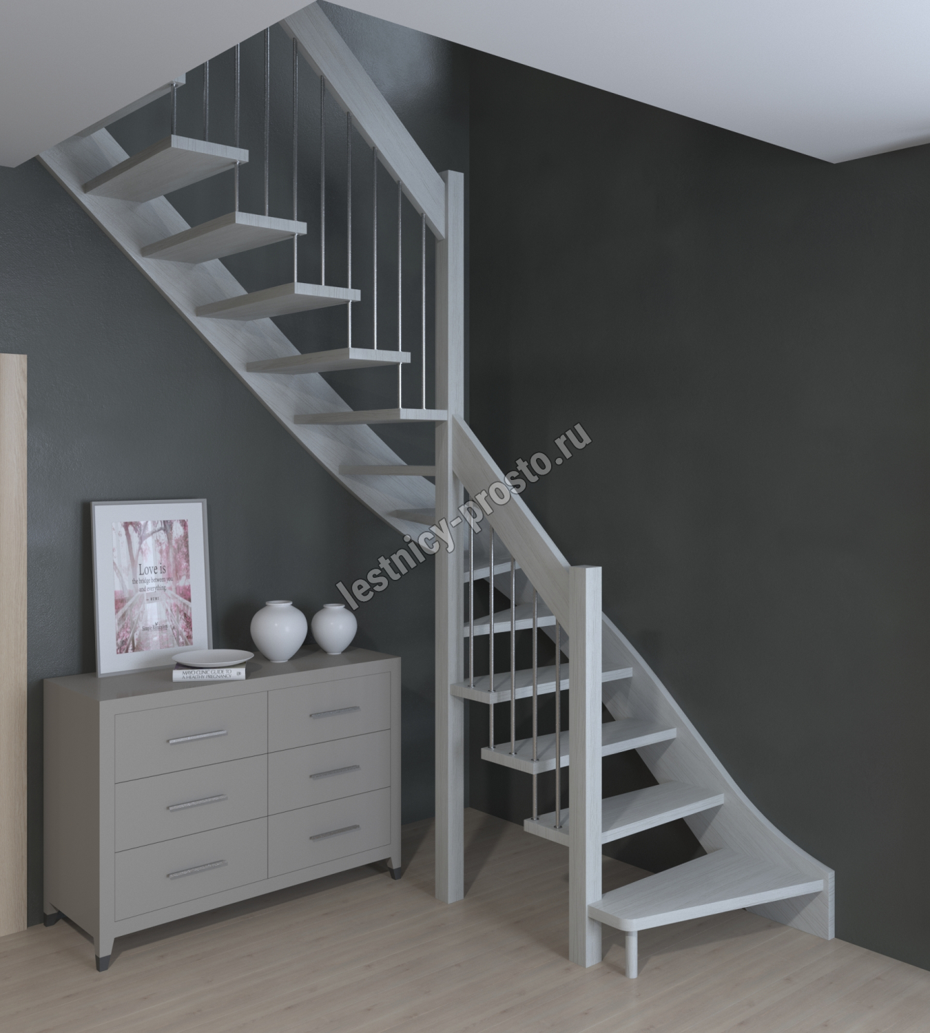 Лестница Prosto Console г-образная забежная дуб, h270 см (11 ступеней)