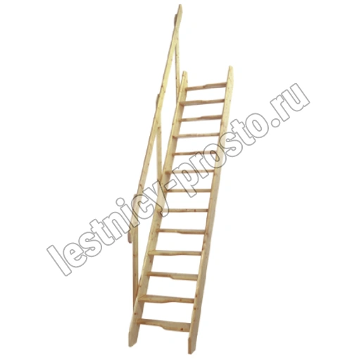 Базовый комплект включает в себя деревянные элементы лестницы и поручень без какого-либо покрытия.