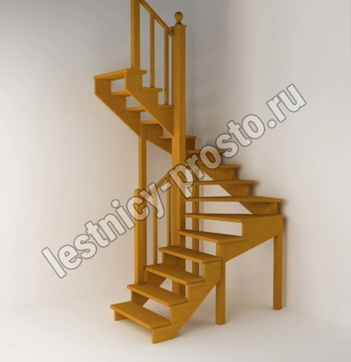 Лестница изготавливается под заказ. Возможны варианты подходящие под необходимые размеры проёма. Базовое ограждение можно заменить на кованое или точеное. Лестницу можно дополнить подступенями, бортиками, миниподступенями. Первую ступень можно заменить на пригласительную - лекальную. Классическая модель поворотной лестницы раскрывает всю природную красоту натуральных материалов. У лестницы комфортная высота шага, удобный широкий марш и угол подъема. Указана стоимость лестницы без какого-либо покрытия.