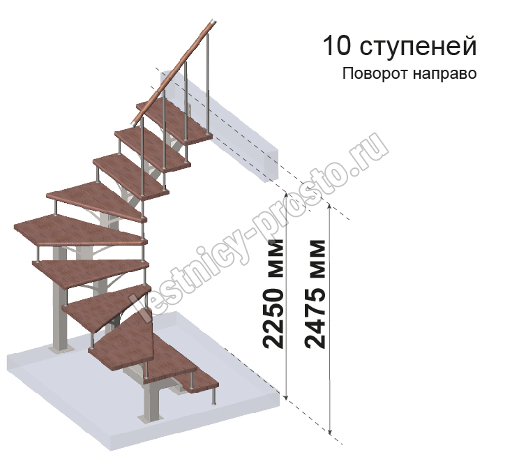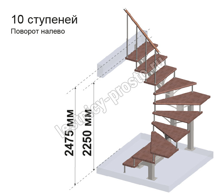 Комплект ограждений для П-образной лестницы MONO h247.5 из 10 ступеней.
