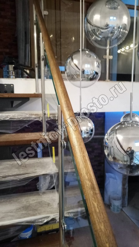 В комплекте: стойки из нержавеющей стали диаметром 38 мм, поручень из бука без покрытия диаметром 50 мм, стекло.<br>