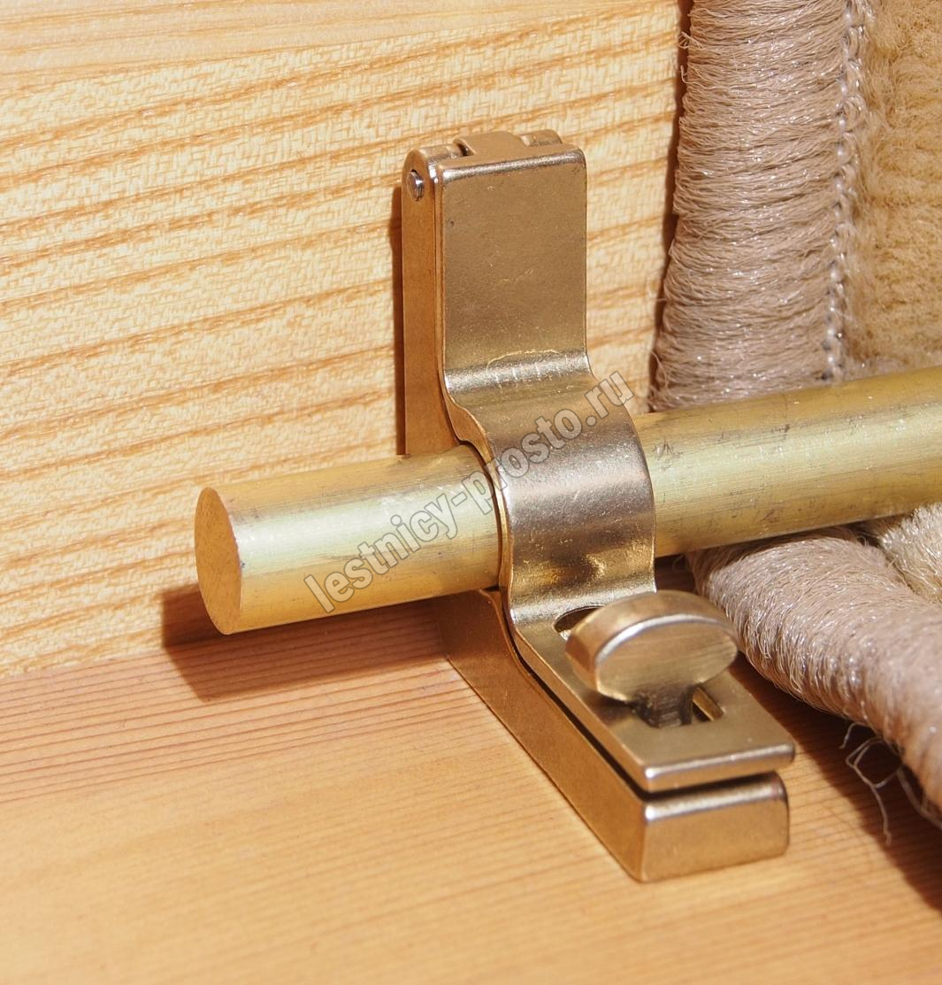Ковродержатель комплектуется двумя держателями из латуни цвета золото, а также цельным прутком из латуни длиной от 131 до 170 см. Конструкция является сборно-разборной не требующей демонтажа креплений, что делает ее долговечной и очень удобной для чистки ковров и ковровых покрытий.
