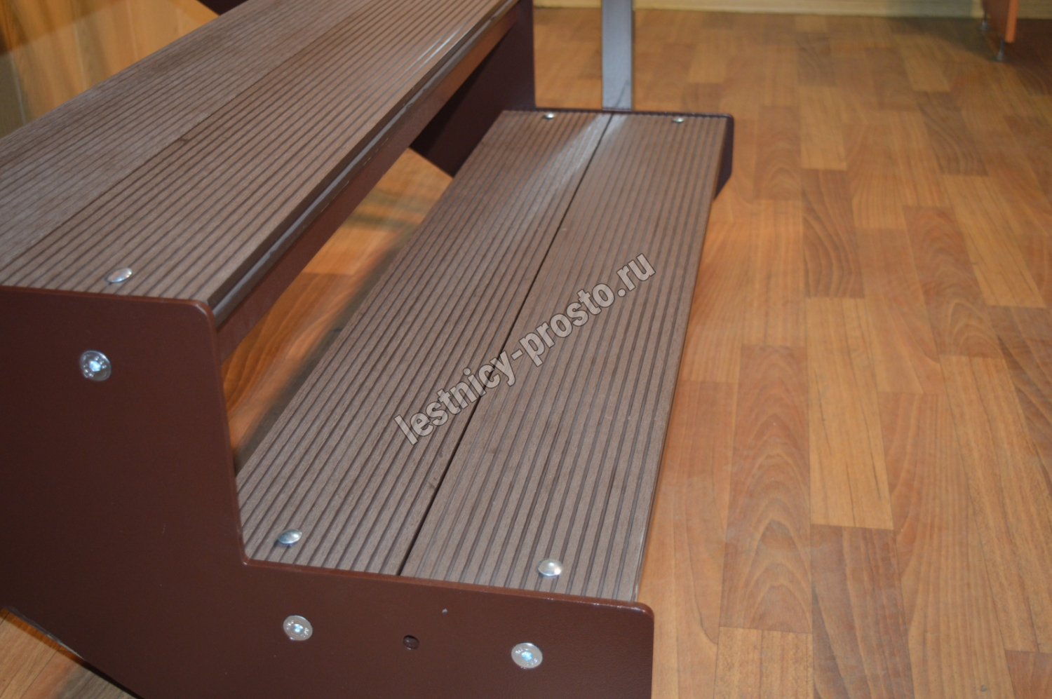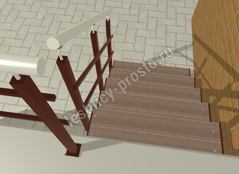 Надежный красивый каркас из толстого стального листа толщиной 8мм с оригинальным дизайном. Покрытие порошковое, очень прочное и долговечное. Все детали каркаса крепятся с помощью болтов, благодаря чему Вы можете собрать каркас самостоятельно без применения сварки. Ступени лестницы состоят из металлической рамки, обеспечивающей необходимую прочность, и покрытия из террасной доски ДПК (древесно-полимерный композит). Ступени не боятся воды и мороза, не теряют со временем свой внешний вид и не требуют ухода. Под заказ, возможно изготовление ступеней из других материалов, таких как: рифленая сталь, лотки под плитку, решетчатый настил, дерево. Базовое ограждение: крашеное или из полированной нержавеющей стали.