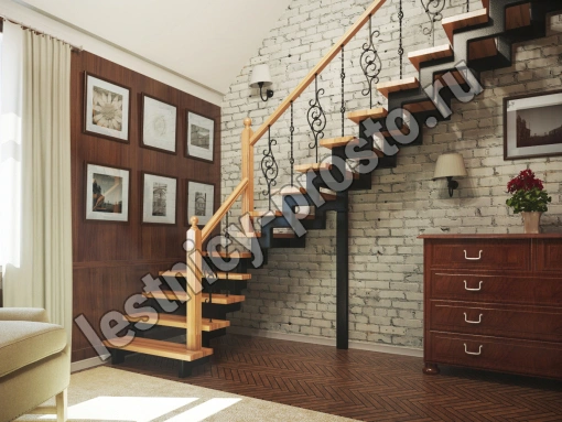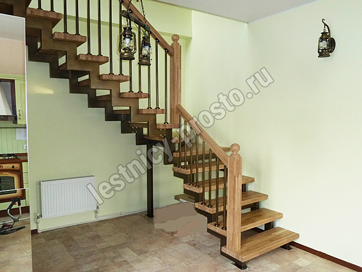 У данного варианта лестницы поворот реализован через забежные ступени. Под заказ возможно изготовление каркаса под поворотную площадку.