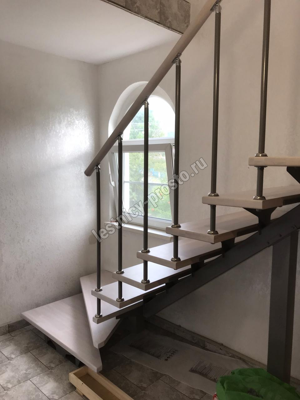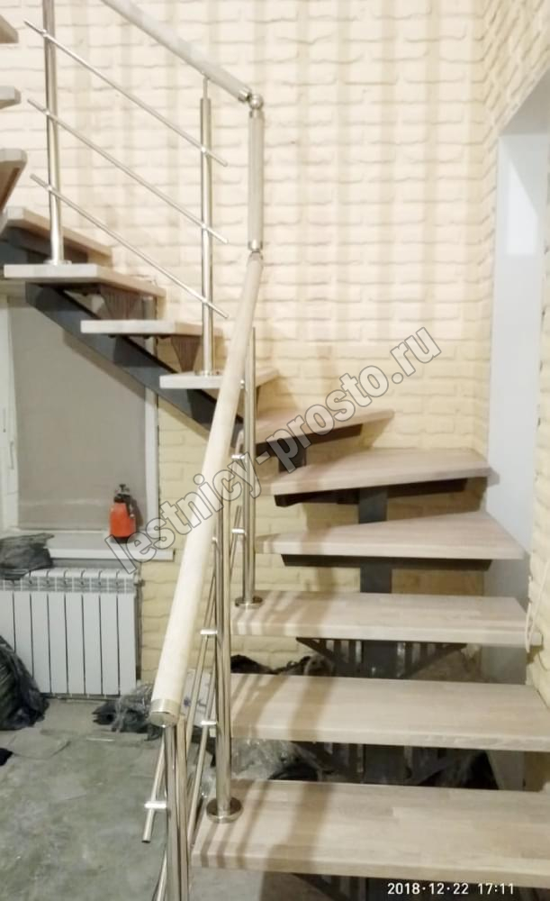 Лестница PROSTO MONO Г-образная h315 см, ступени лиственница