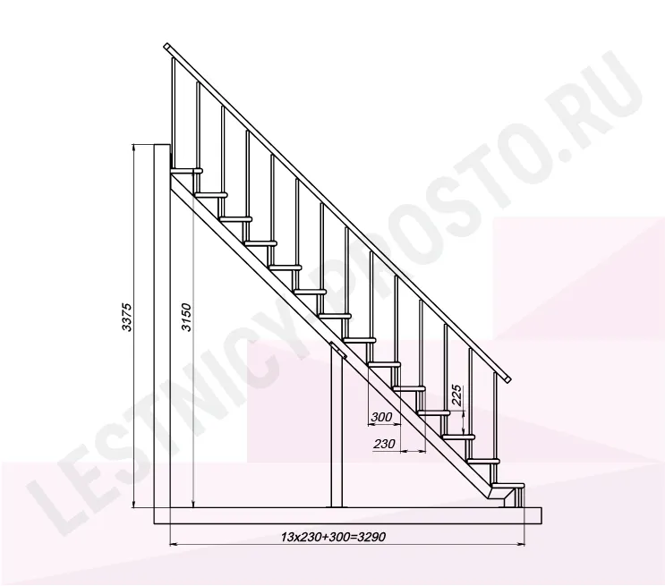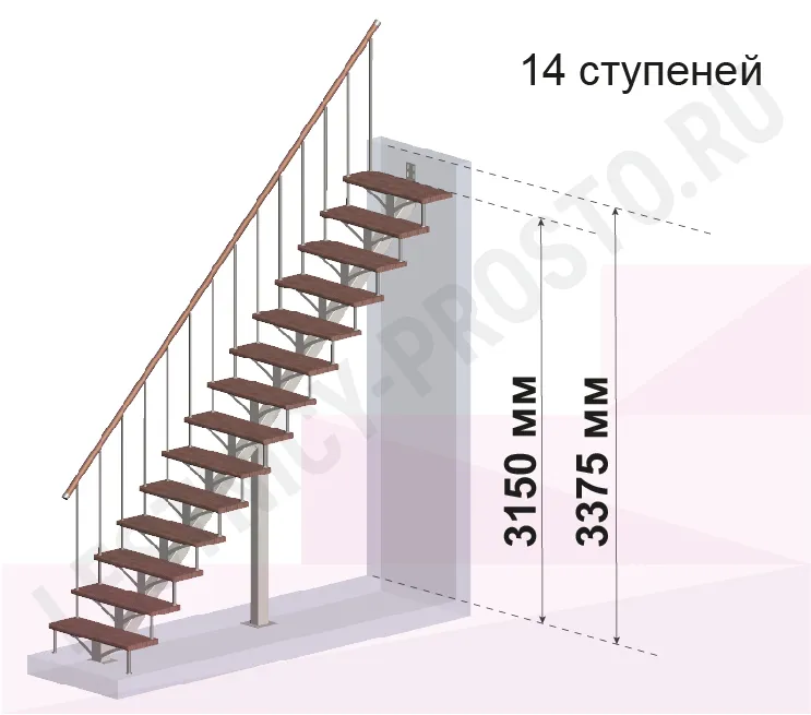 Лестница PROSTO MONO прямая, h337.5 см, ступени хвоя