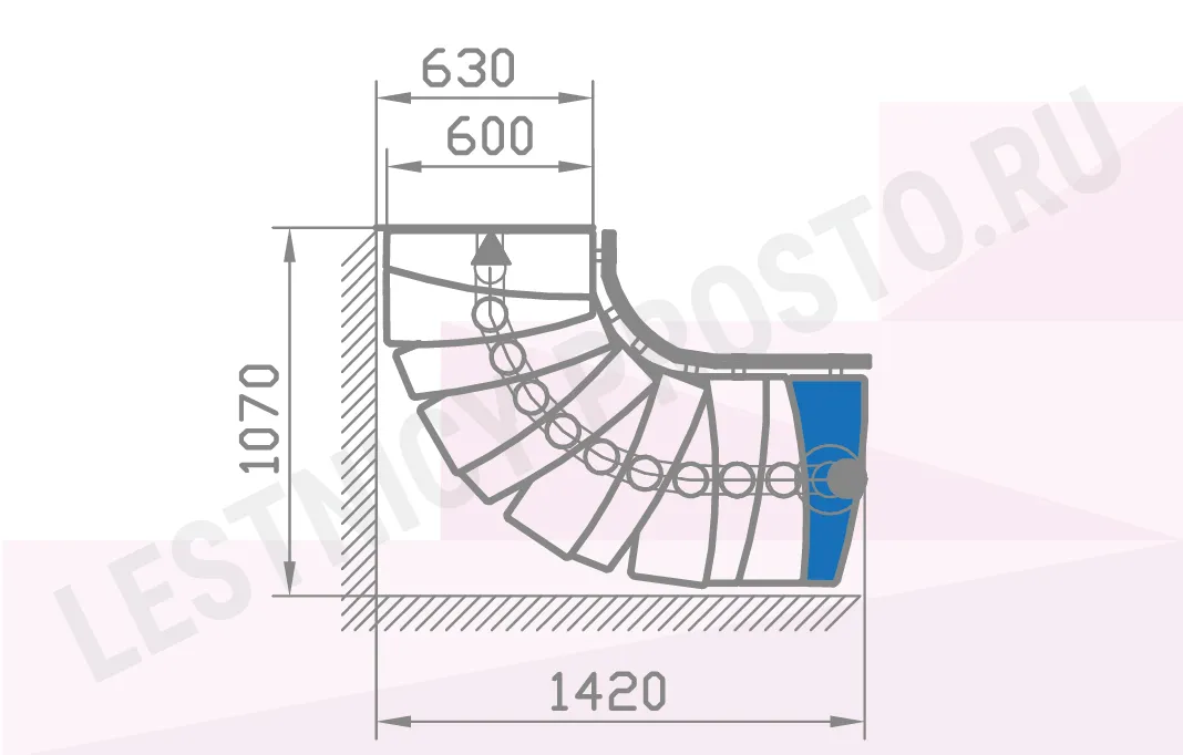 При монтаже этой лестницы, возможно регулировать высоту и глубину шага, таким образом можно получить лестницу под высоты этажа в диапазоне 2220 - 3000 мм.
