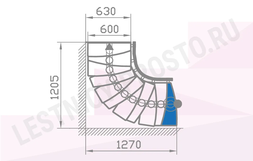 С помощью дополнительных секций (ступень + фрагмень модуля каркаса + фрагмент ограждения) можно увеличить высоту базовой лестницы до 3750 мм.