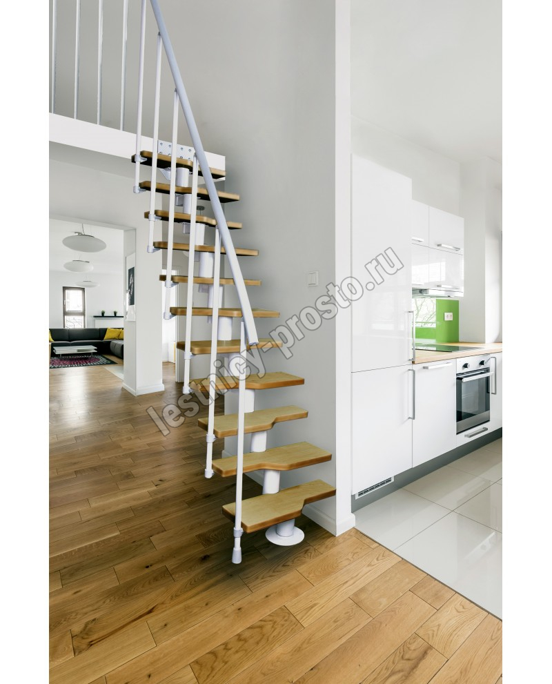 Модульная конструкция позволяет собрать лестницу наилучшим образом подходящую по форме вашему помещению, как прямую, так и L-формы, U-формы.