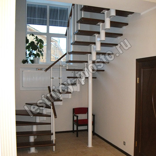 Каркас лестницы представляет собой набор модулей, которые комплектуются уже готовыми к монтажу.