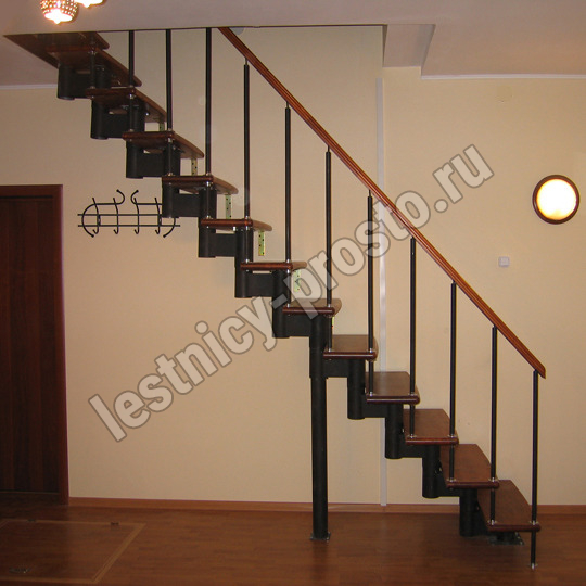 Каркас лестницы представляет собой набор модулей, которые комплектуются уже готовыми к монтажу.