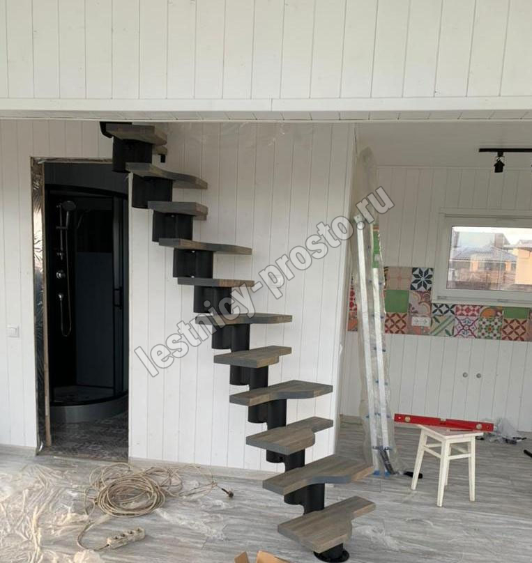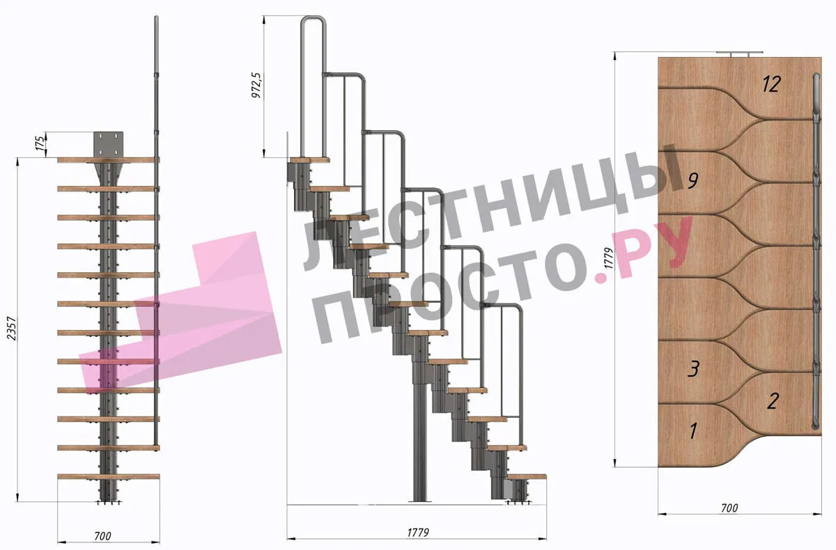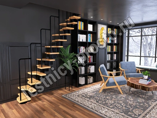 Лестница Prosto Urban Black гусиный шаг 700 мм, h216-312 см (12 ступеней), ясень