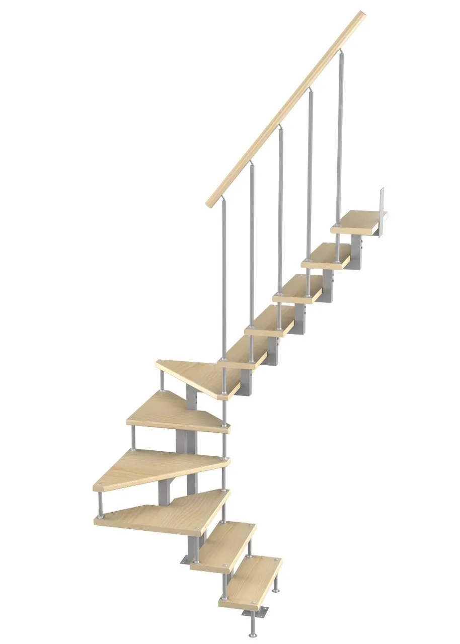 соответствует картинке, но вы не ограничены в его выборе. Лестницу можно приобрести и без ограждения, и с любым другим. Устанавливать на такую лестницу можно почти всё, начиная от классических деревянных балясин и заканчивая эксклюзивными коваными изделиями.