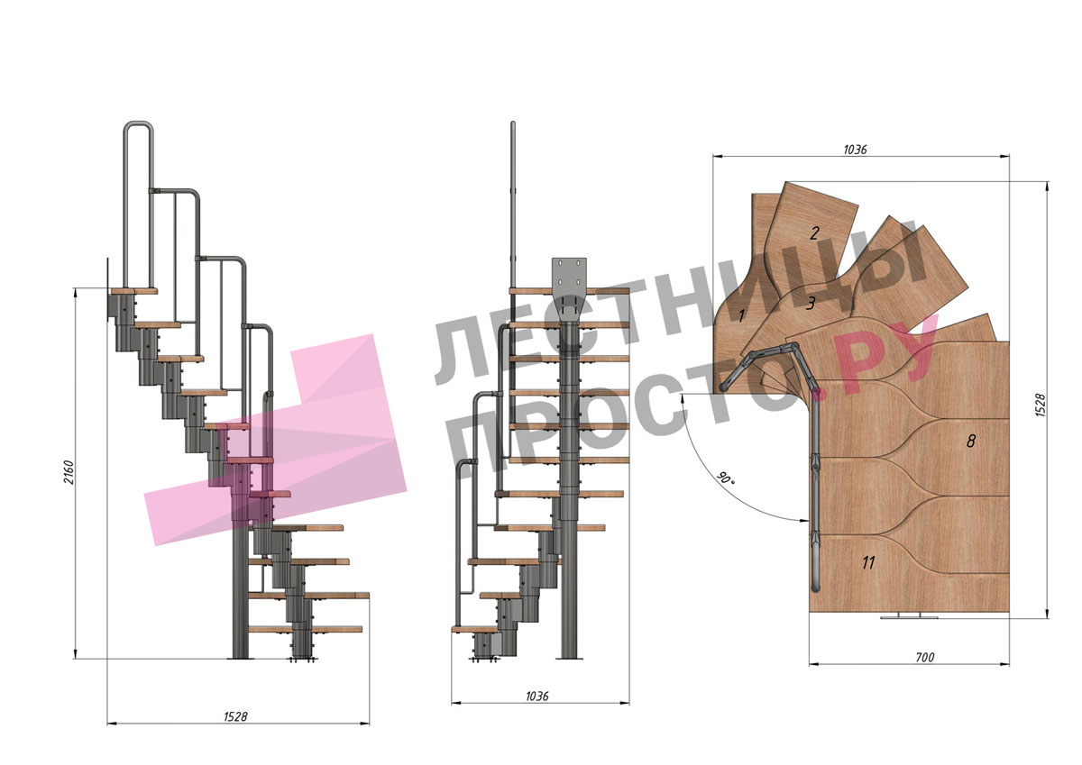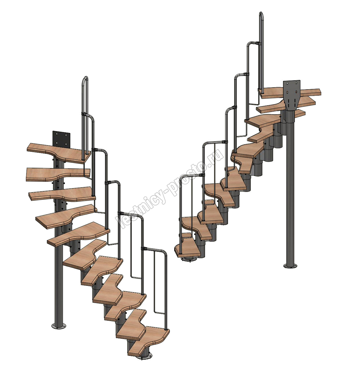 Лестница Prosto Urban Black гусиный шаг 700 мм, h198-288 см (11 ступеней), берёза мультиплекс