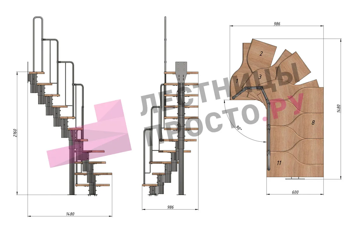 Высота лестницы 1980 - 2880 (11 ступеней) мм