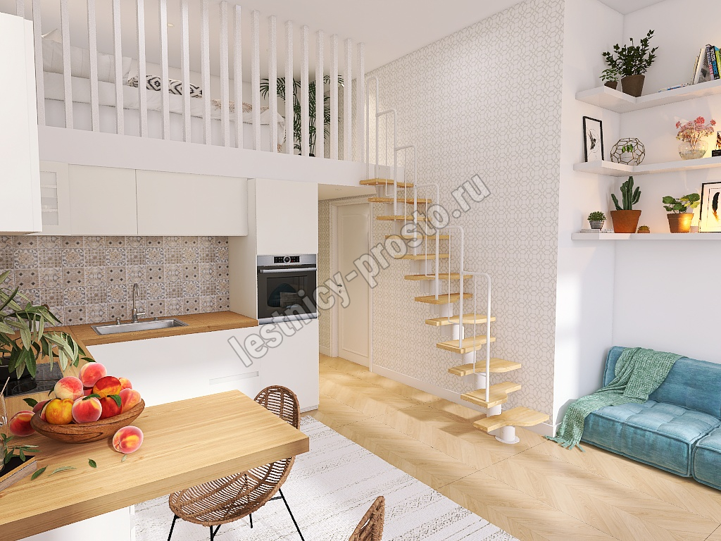 Лестница Prosto Urban White гусиный шаг 600 мм, h216-312 см (12 ступеней), берёза мультиплекс