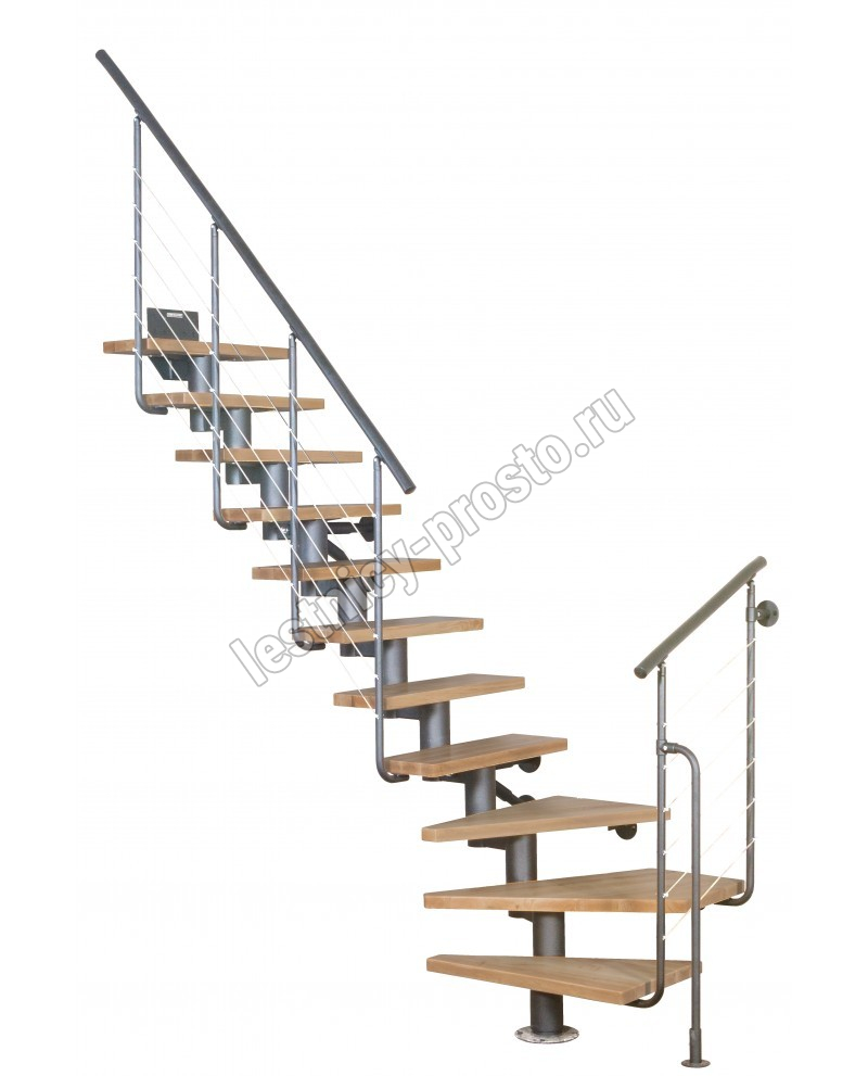 Есть возможность регулировать высоту ступеней. В комплект входят перила с вертикальными стойками и горизонтальными перегородками.