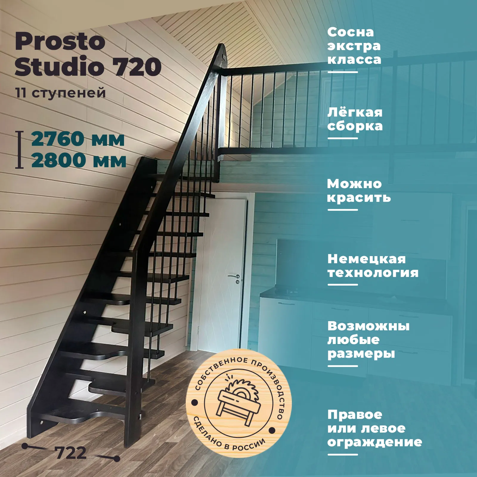 Модульная лестница Фаворит 225 2250-2350, Черный, Лиственница, Крашеная