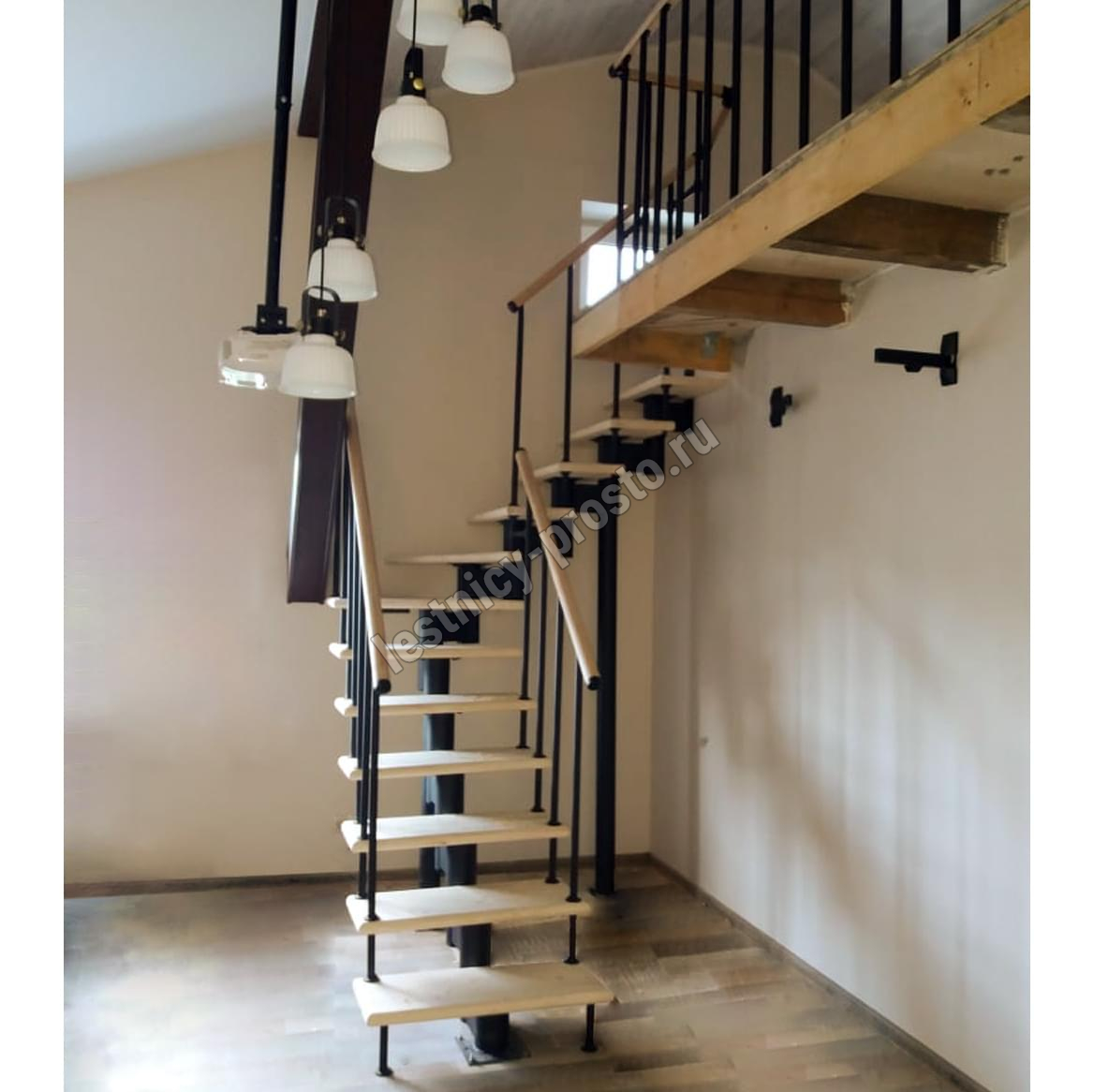 Модульная лестница PROSTO MODULE Г-образная, h202.5, лиственница