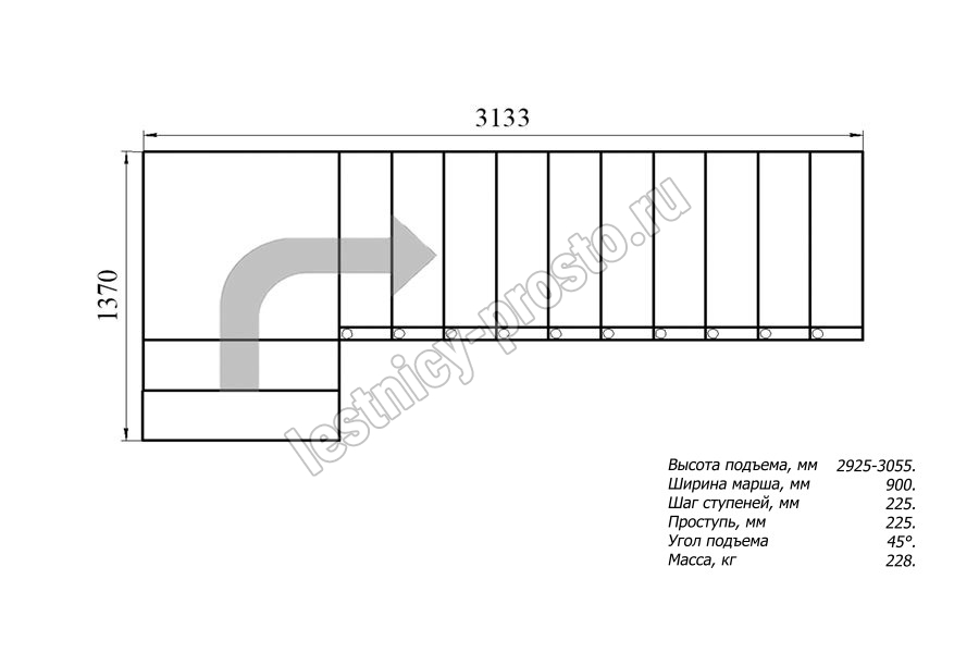 Модульная лестница Статус 225 2925-3055, Серый, Бук, Крашеная