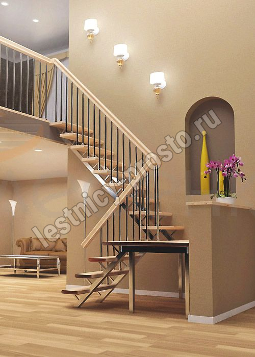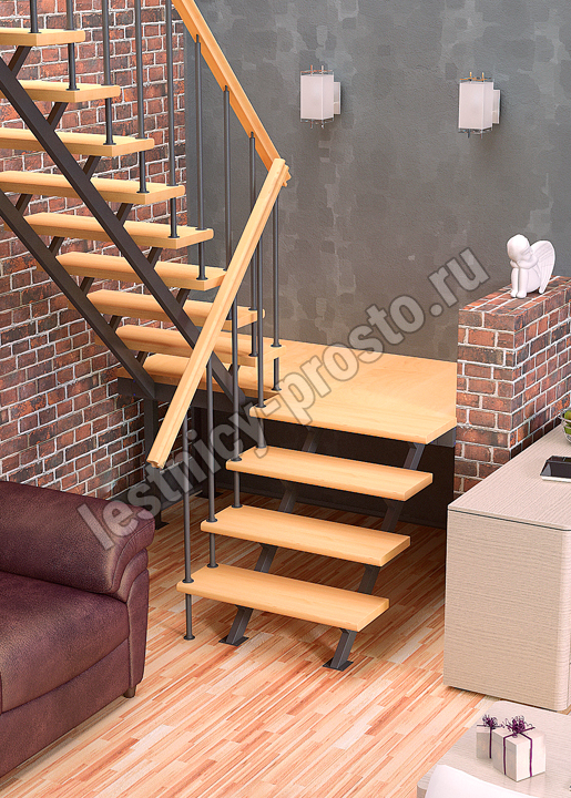 Промежуточная площадка, при необходимости, может крепиться к стене 4-мя анкер. болтами с 3-х сторон или просто устанавливаться на 4-х опорах из профильной трубы 40х60 L-770 мм. Струны под ступени изготовлены из профильной трубы 40х60 и трубы 20х20 с перемычкой из листа S-3, к которой крепится ступень. Упаковка: