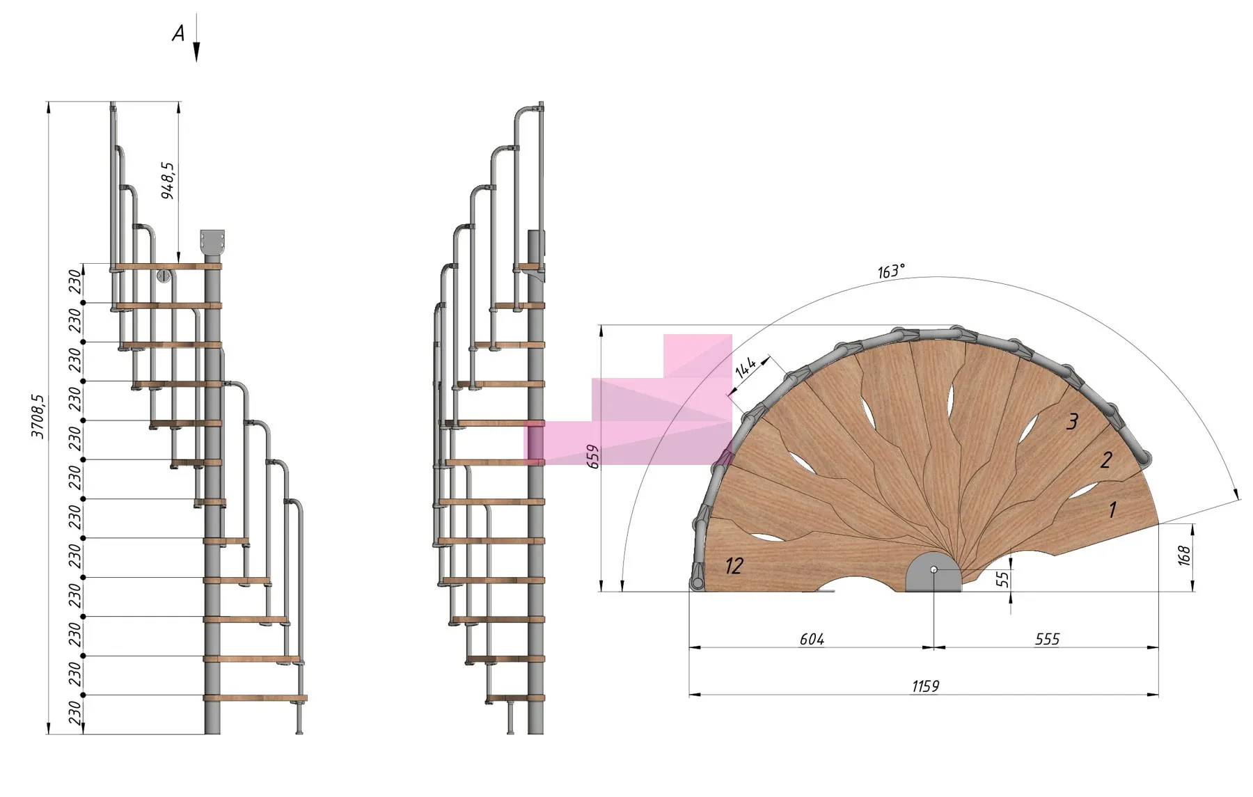 Высота лестницы 2760 - 2990 (12 ступеней) мм