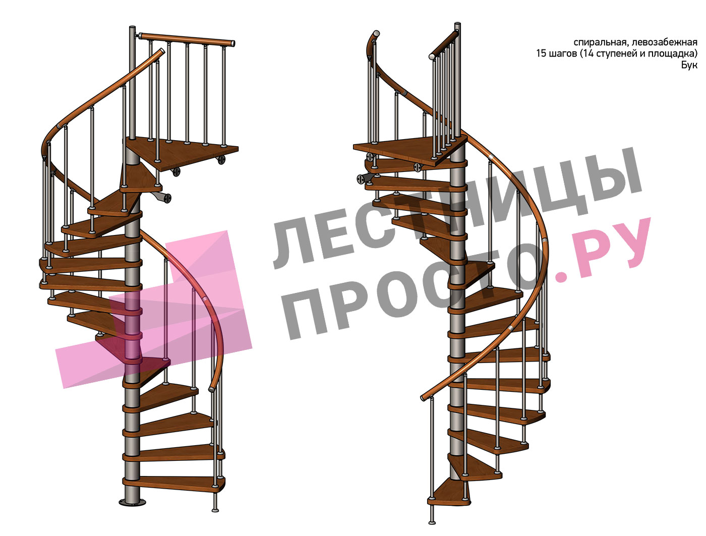 Левая, d=160см, 14 ступеней + площадка