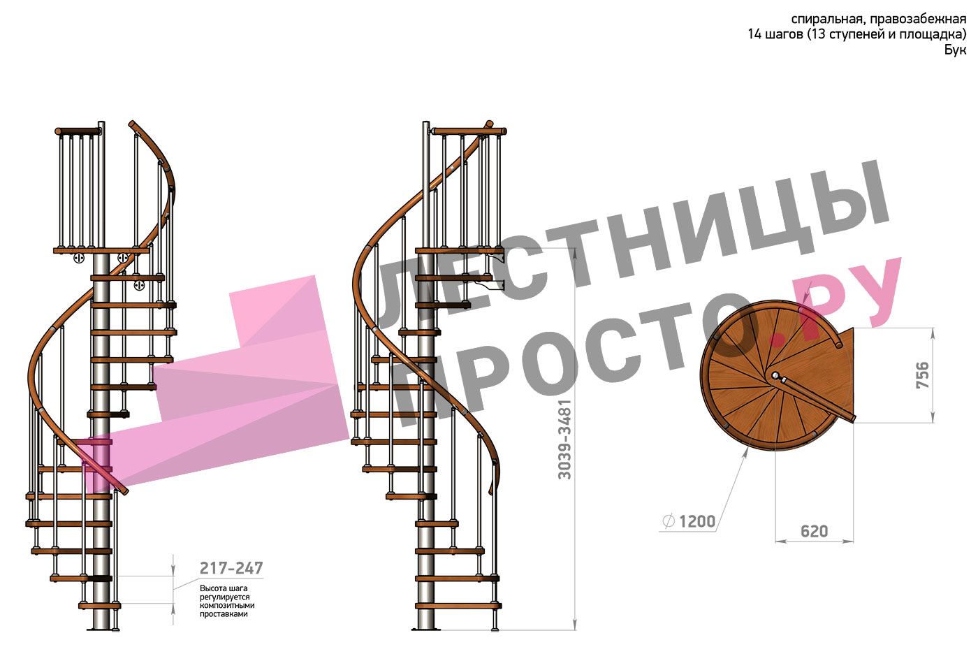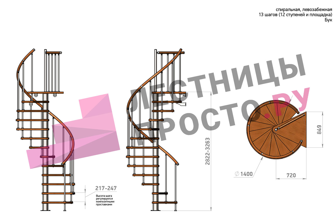 Высота ступеней регулируется с шагом 3 мм. в пределах 217-247 мм., благодаря чему, лестница прекрасно подгоняется под необходимую высоту.