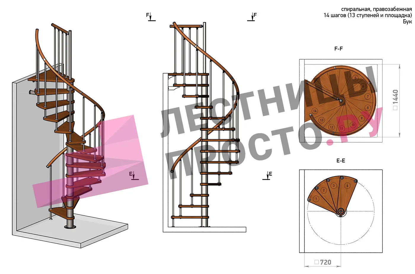 | Винтовая лестница Prosto Spiral Black D140см, h282.2-326,3 см, бук |
